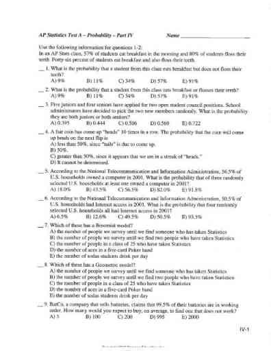 Read Ap Statistics Test B Probability Part Iv Answers PDF